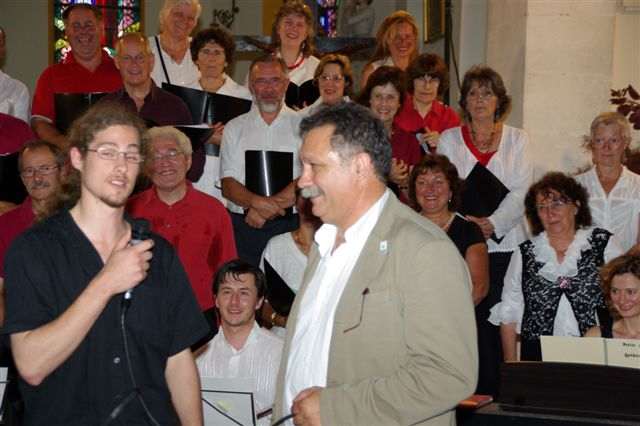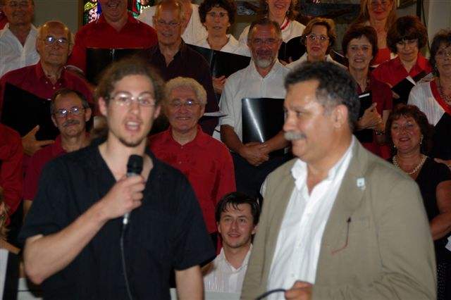Marco, un jeune Québecois arrivé la veille dans le cadre d'un échange Saint Pardoux / Québec, a pu assister au concert, et a exprimé son bonheur d'entendre "La Petite Suite Québecoise" si chère au coeur de tous les Canadiens francophones. |
